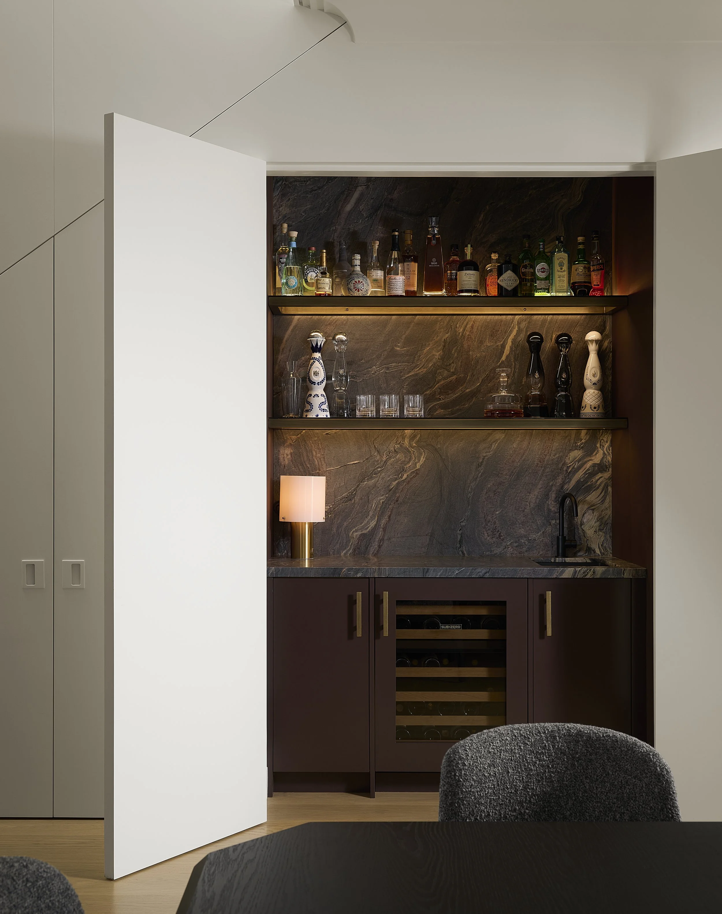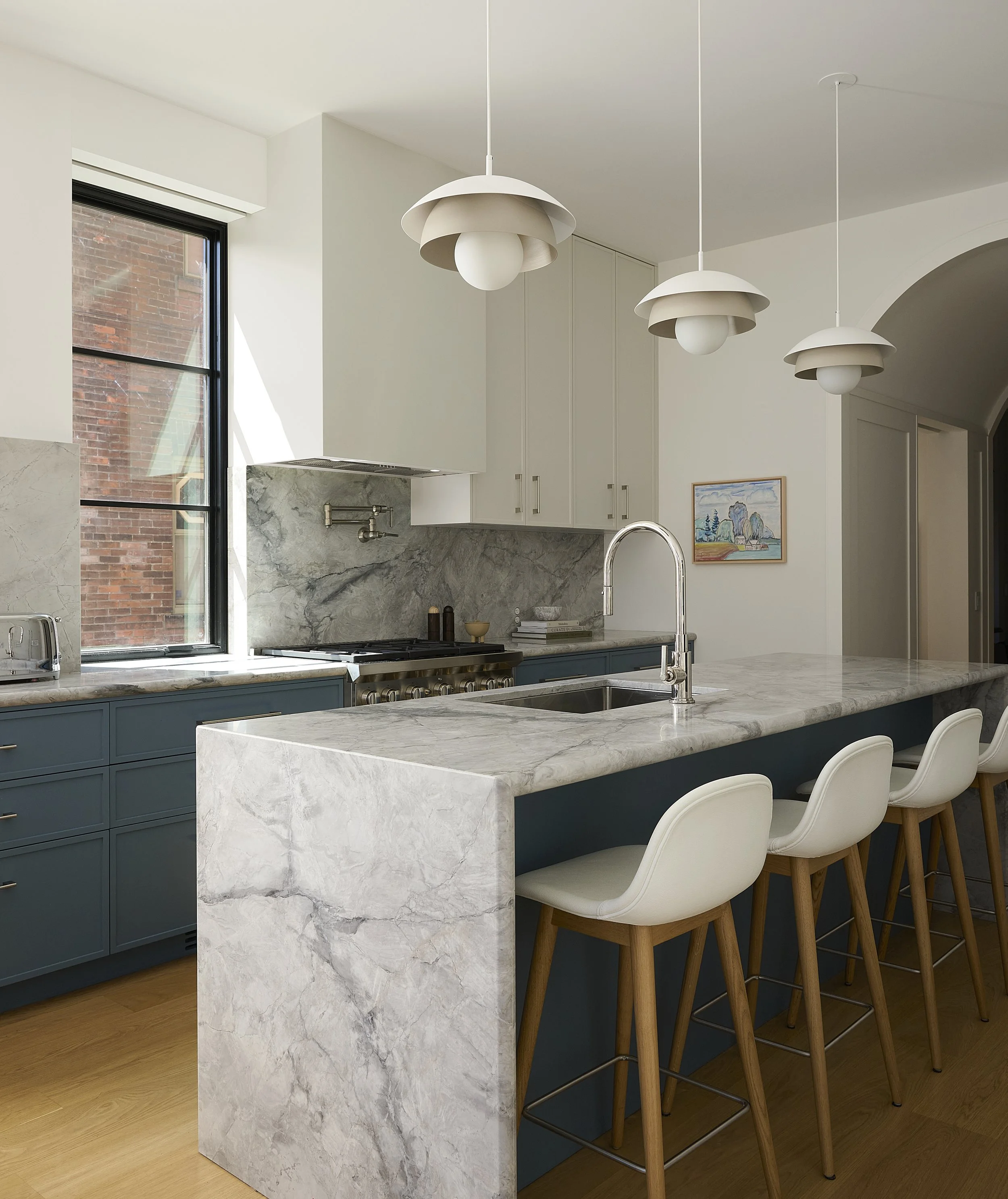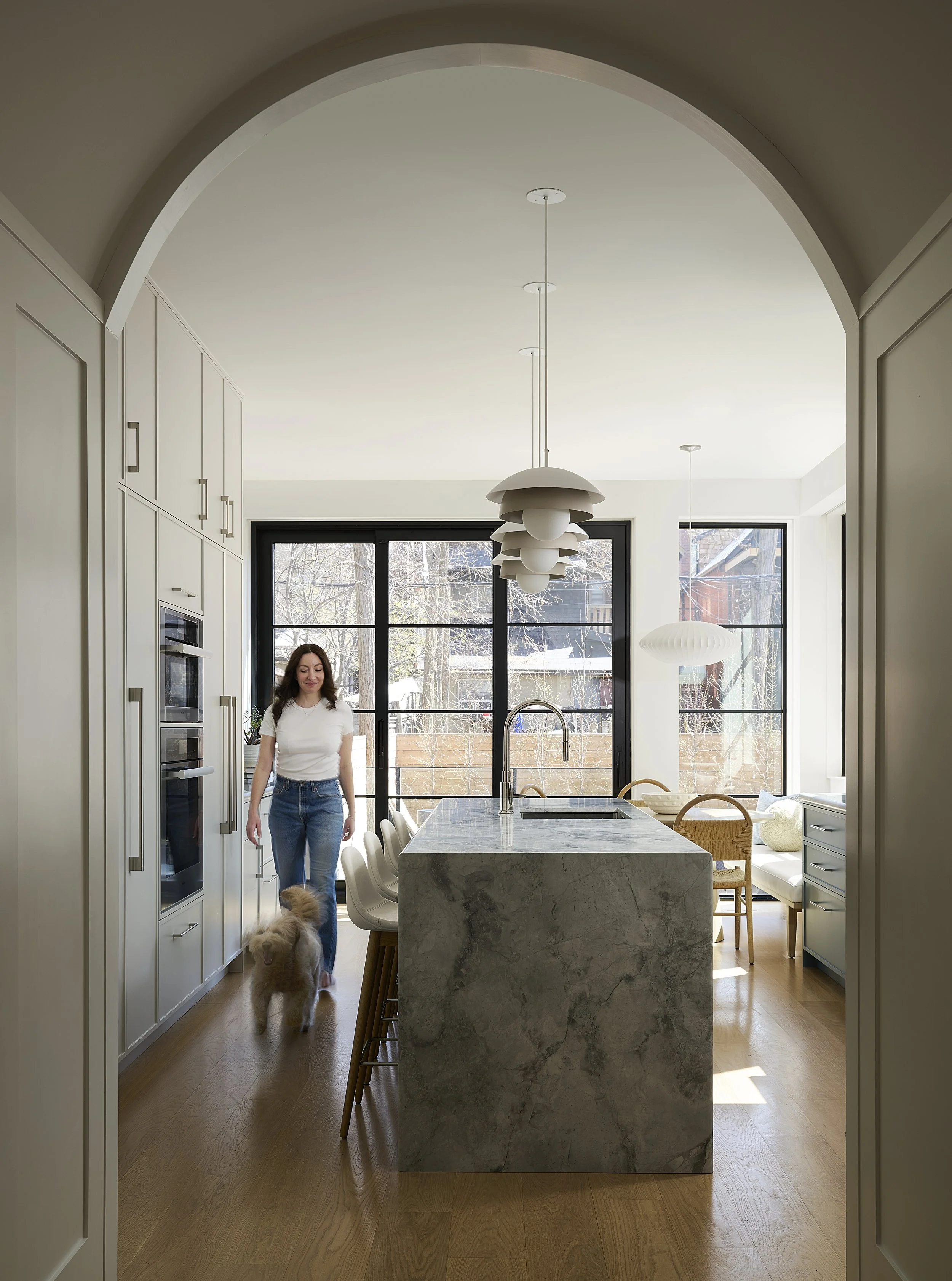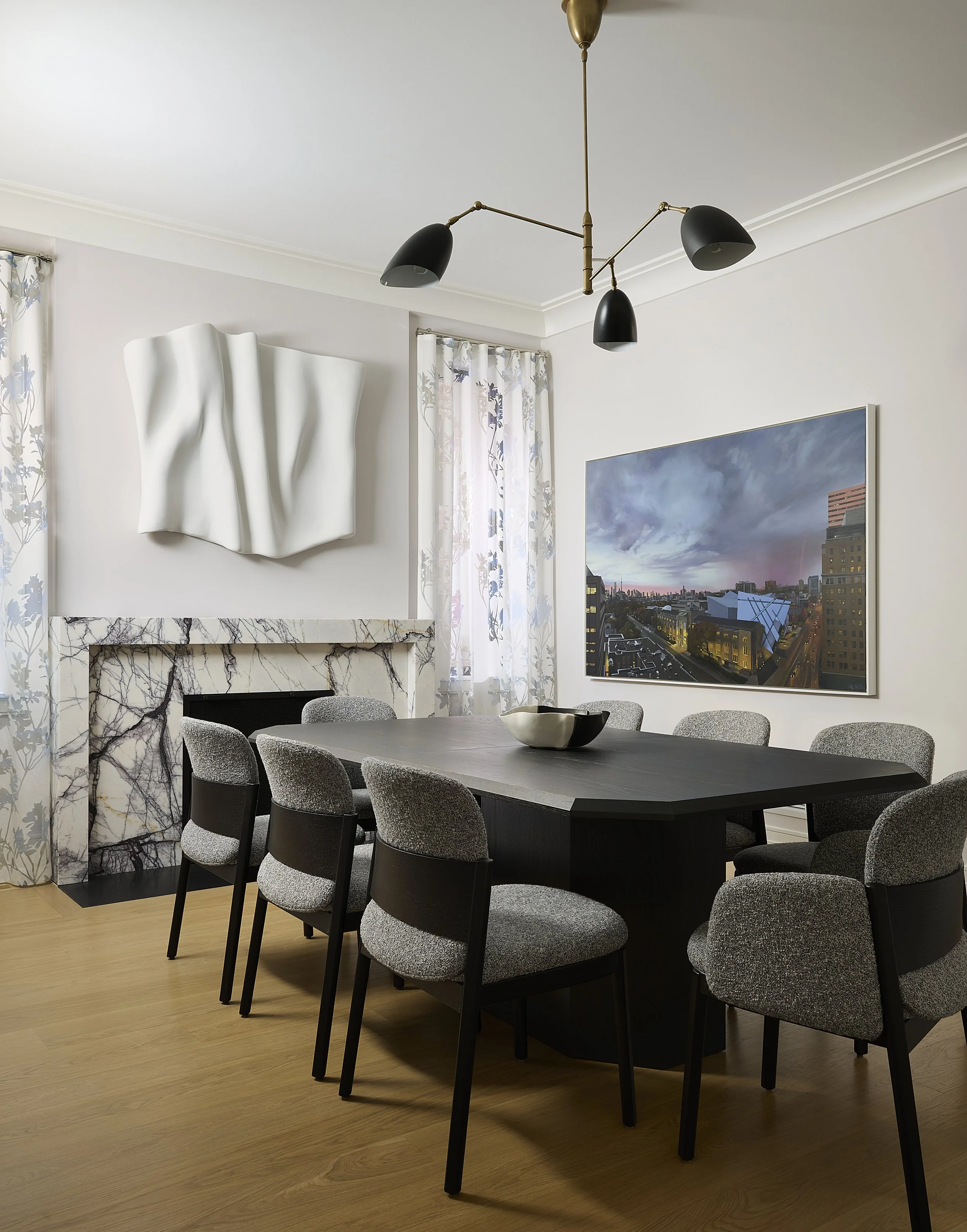 The contemporary Annex residence is located on one of Toronto’s most fabled Annex streets. Built in the 1900’s, the house underwent a full interior renovation along with a limestone rear addition to suit today’s standards of living. The design inspiration combined restoring some original details of the home, whilst mixing in contemporary clean lines. Designer and clients alike felt it was important to maintain the original feeling of the Victorian style home with details including: refinishing original wainscoting, crown molding, and fireplace locations. The client’s colourful personal art collection paired with contemporary furnishings really allows this project to stand out.
